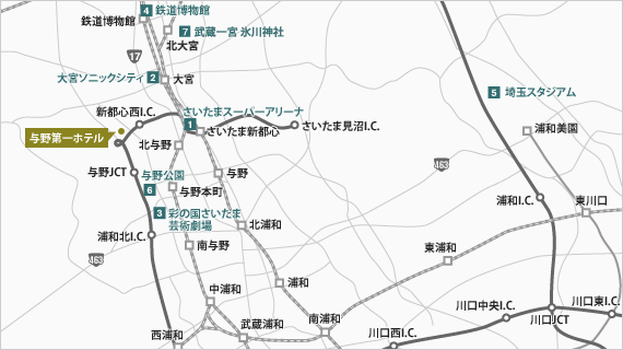 - 大宮駅よりニューシャトル鉄道博物館駅下車、徒歩1分