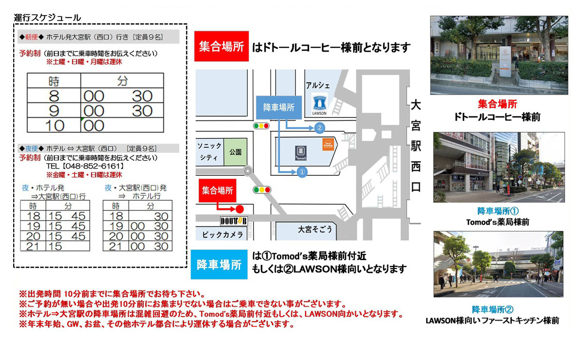 JR大宮駅間無料送迎(要予約)※2026年5月29日(金)朝の最終便で運行サービスを終了致します。