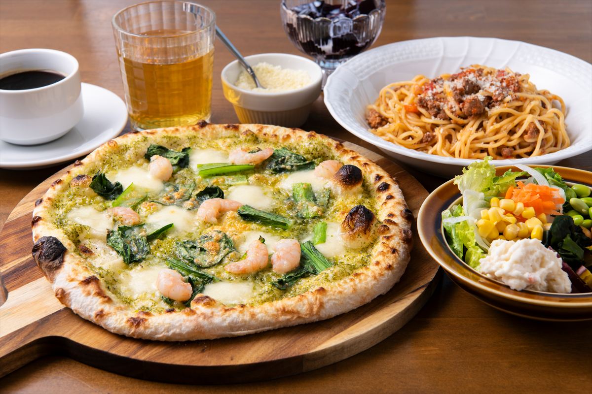 北海道産小麦粉を低温で48時間以上熟成させた生地を400度の専用窯で一気に焼き上げることで、外はパリッと中はもちもちの食感を実現したピザは、モチモチの仕上がりで絶品!パスタ麺は菅野製麺の生パスタを使用。デザート類・アルコールも各種取り揃え、お一人様からご家族連れでもお楽しみいただけます。